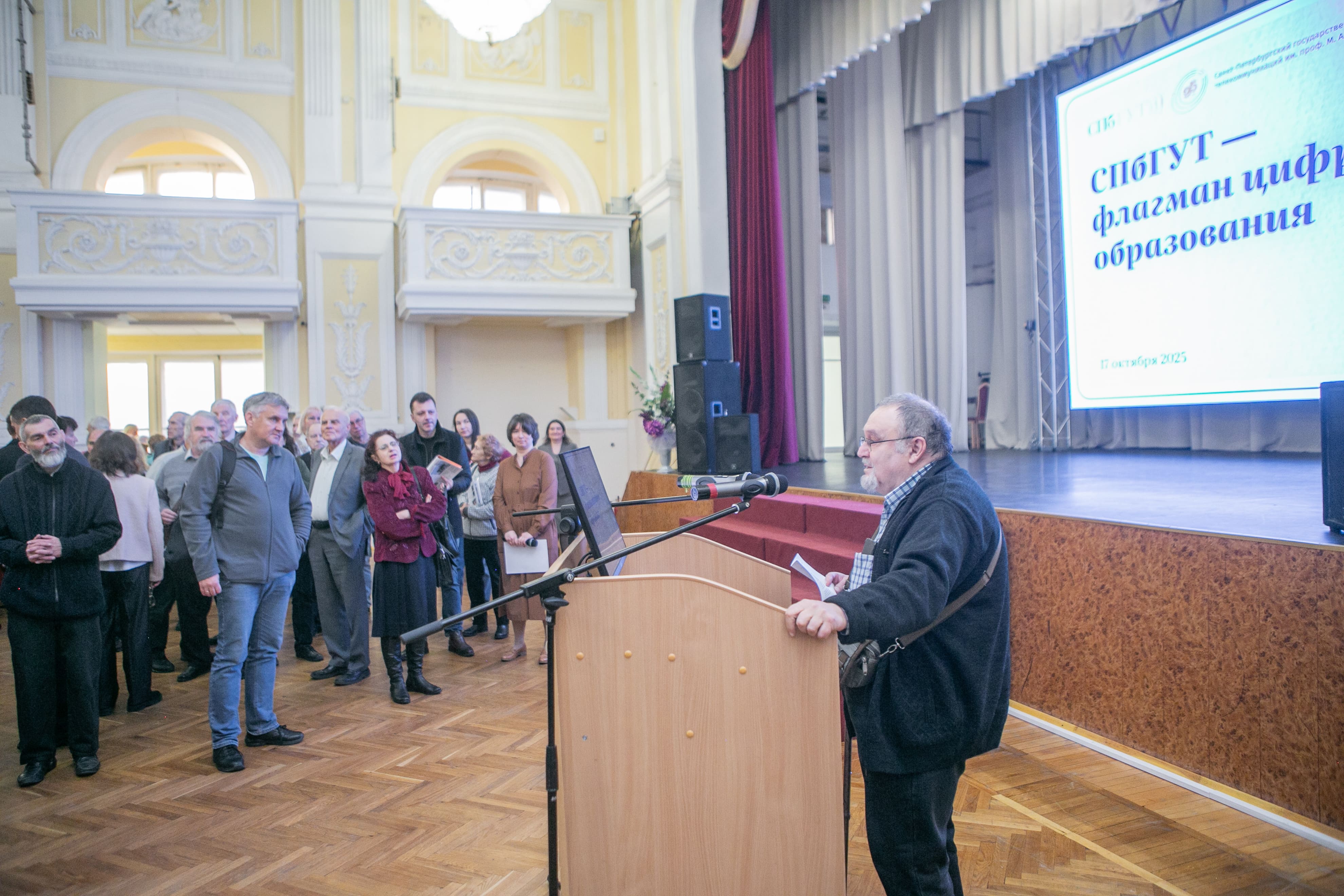 Перед выпускниками выступил ректор СПбГУТ, д. т. н. Руслан Киричёк, выпускник 2007 года. Он рассказал, чем живёт университет сегодня: участвует в программе «Приоритет 2030», обучает студентов самым востребованным инженерно-техническим профессиям в области связи, телекоммуникаций и ИТ, строит планы на будущее.