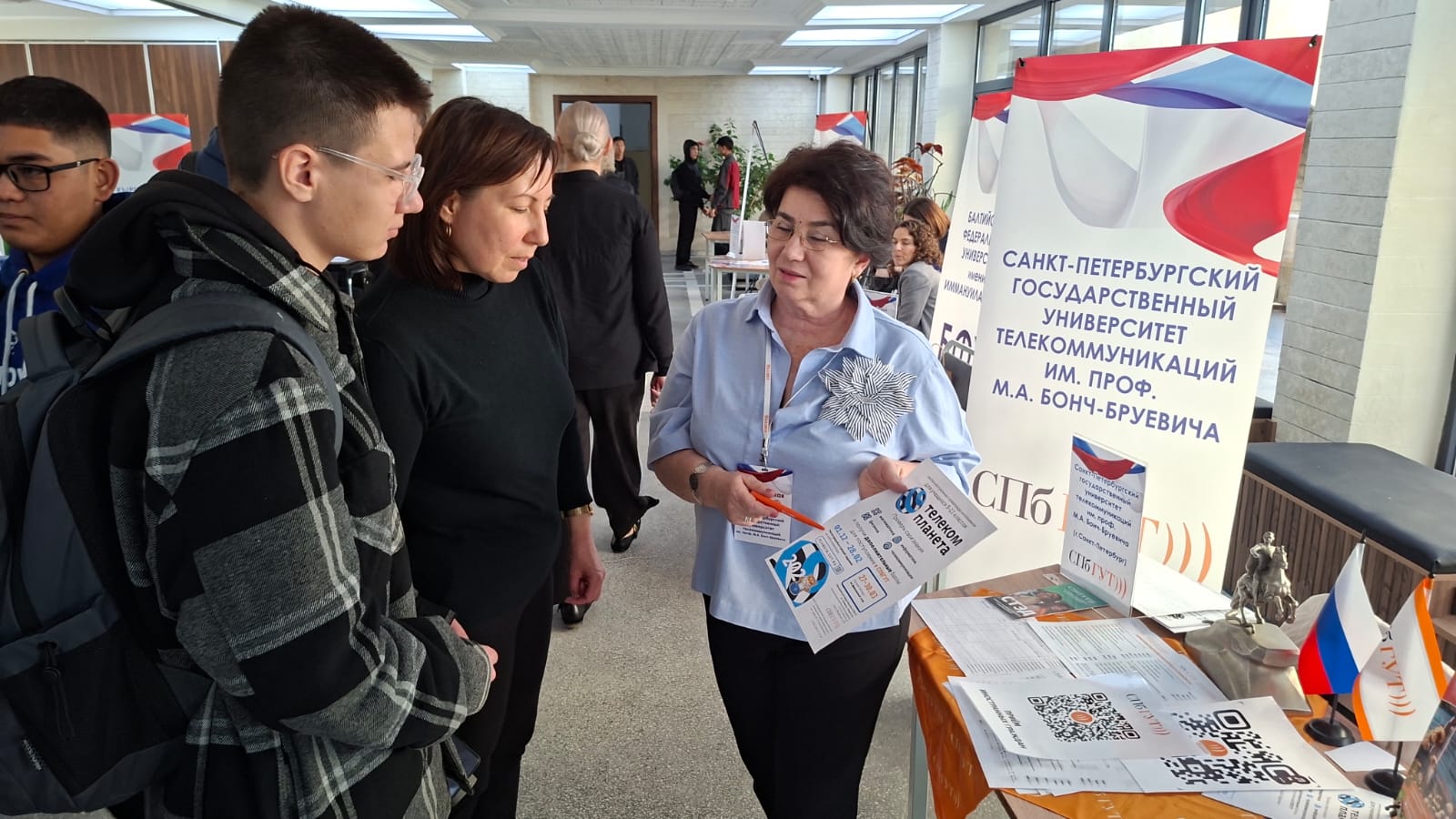 Площадка СПбГУТ стала одной из главных точек притяжения среди 26 российских вузов, которые приняли участие в мероприятии. Официальный представитель университета Светлана Смольницкая рассказала ребятам о жизни университета, особенностях поступления, тонкостях подачи документов в новом учебном году и, что особенно важно, о возможности учиться бесплатно за счёт правительственной квоты.