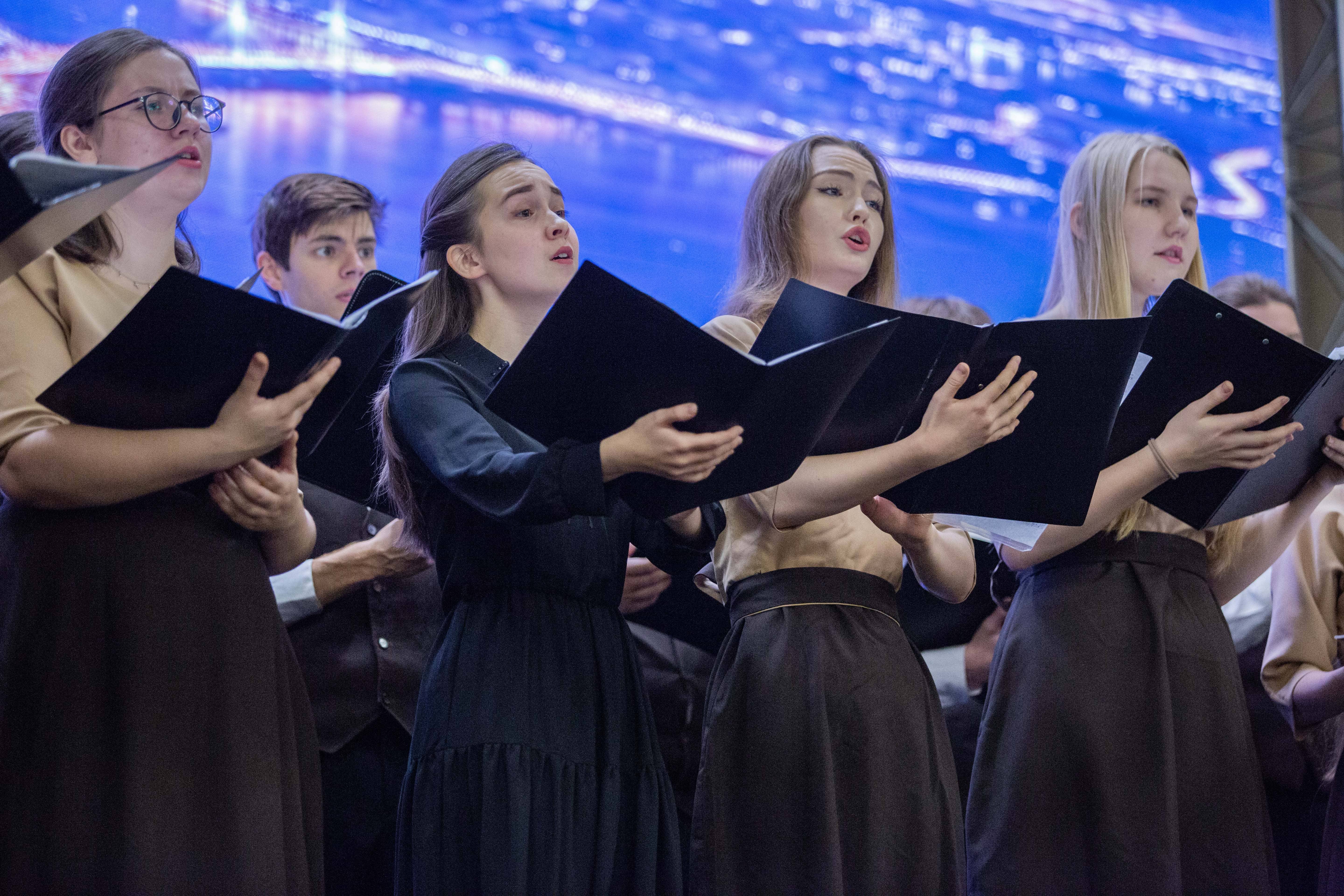 В завершение мероприятия гостей ждал праздничный концерт, на котором выступили Камерный хор «Cantares» Санкт-Петербургского университета телекоммуникаций и лауреат всероссийских и международных конкурсов, солист ансамбля песни и пляски Ленинградского военного округа Владимир Зернов.