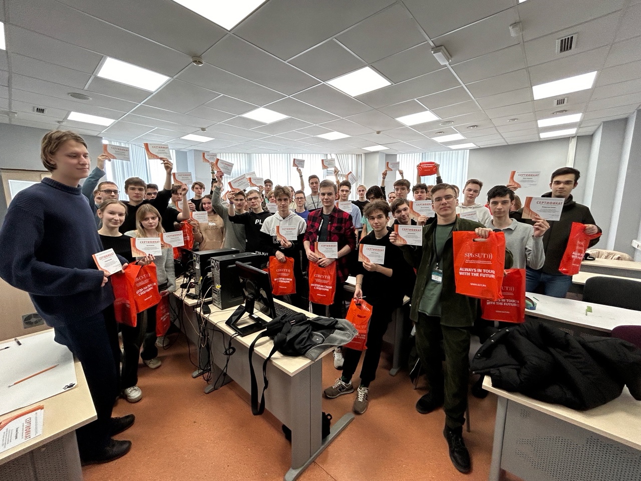 По итогам обучения участникам вручается сертификат, дающий право на получение баллов в качестве индивидуальных достижений при поступлении в СПбГУТ. Обращаем ваше внимание, что для получения сертификата требуется посещать все занятия!