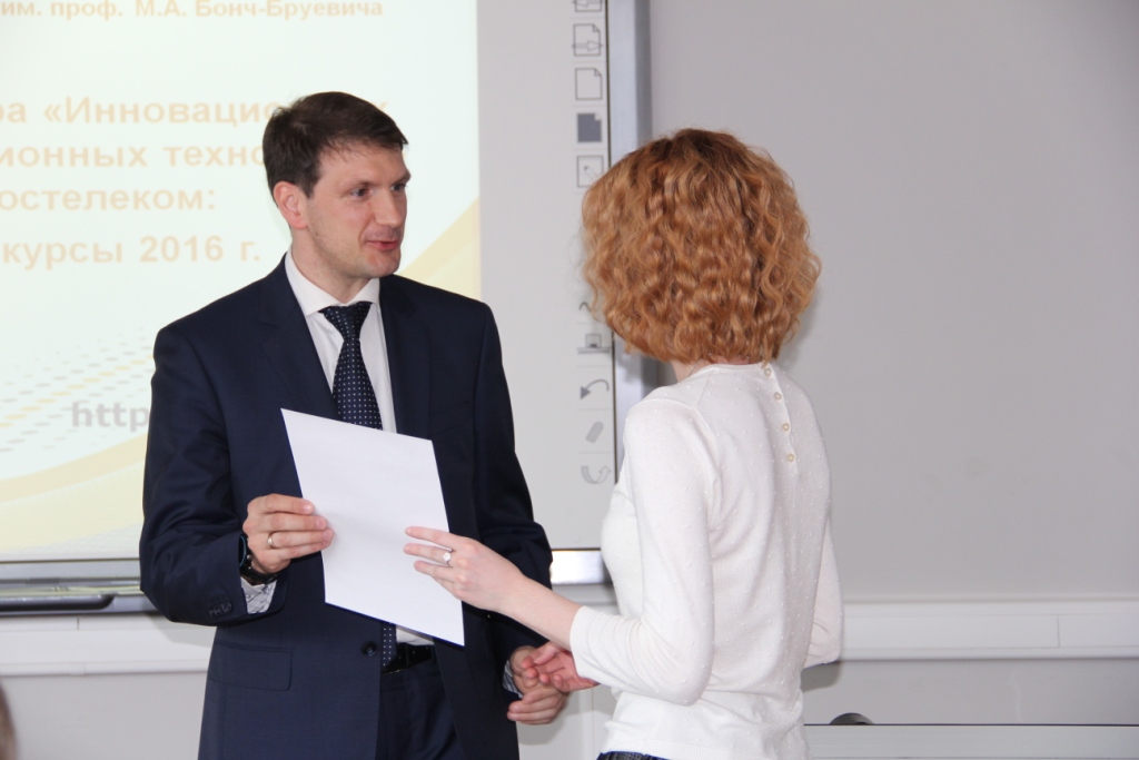 В рамках мероприятия заместитель заведующего кафедрой доктор технических наук, профессор Борис Соломонович Гольдштейн ознакомил присутствующих с учебным планом кафедры в формате презентации. Кроме того, студентам вручили памятные подарки и приглашения в «Ростелеком», дающие возможность посещать в дальнейшем внутрикорпоративные мероприятия Компании.