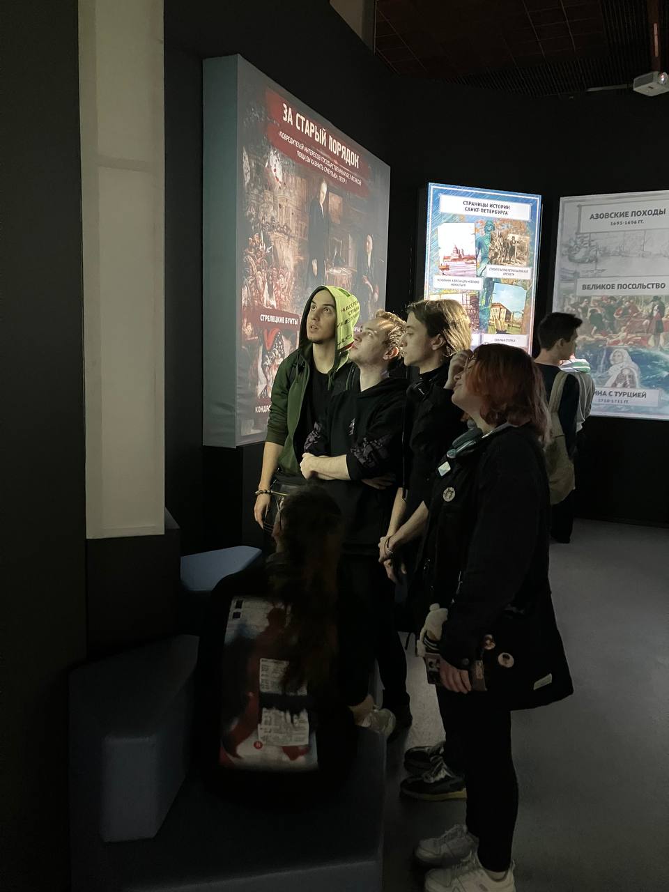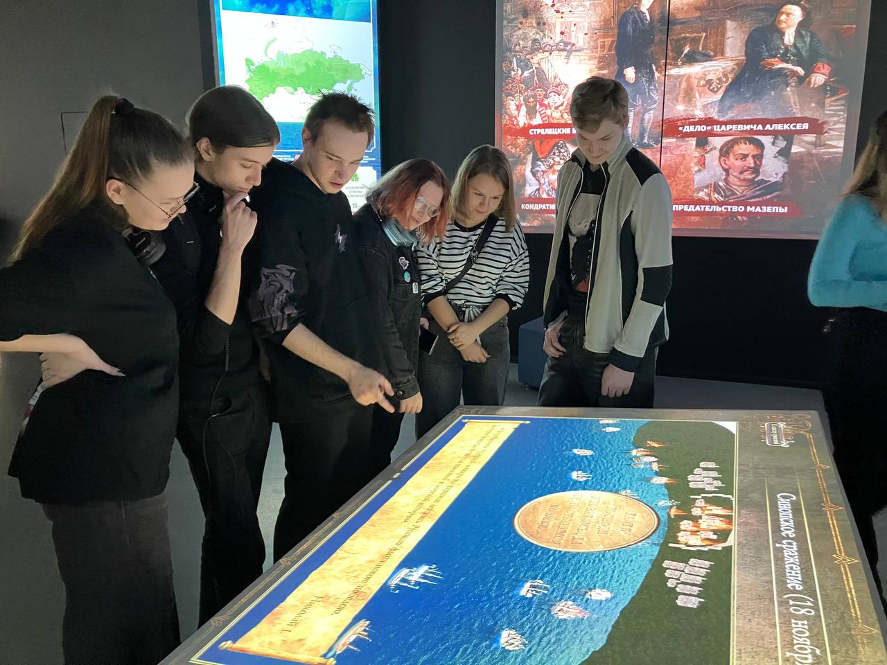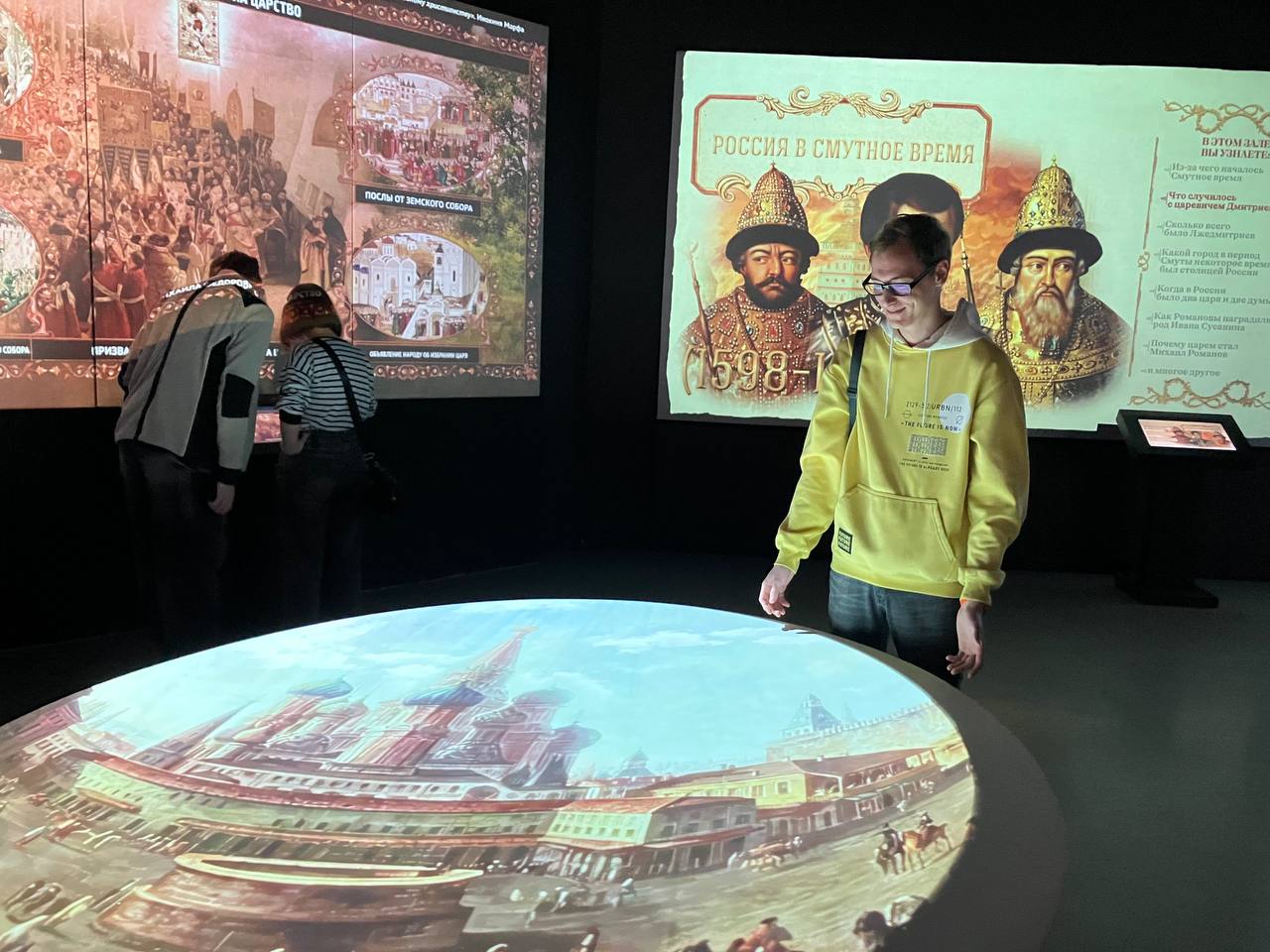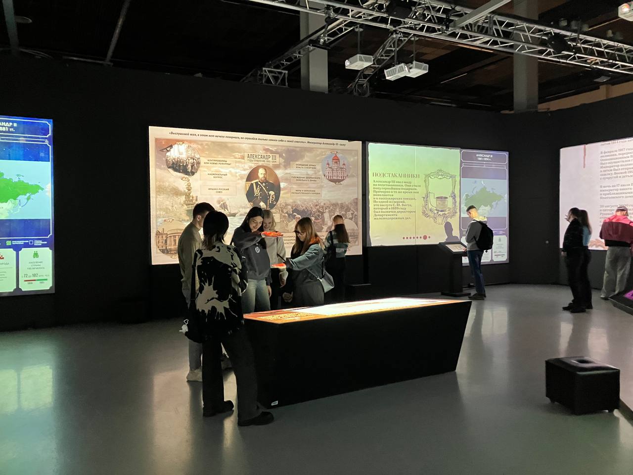 В историческом парке «Россия — моя история» на мультимедийной выставке «Романовы» студенты узнали о современных музейных технологиях — об использовании ИИ в представлении экспонатов и интерактивных экспозициях.