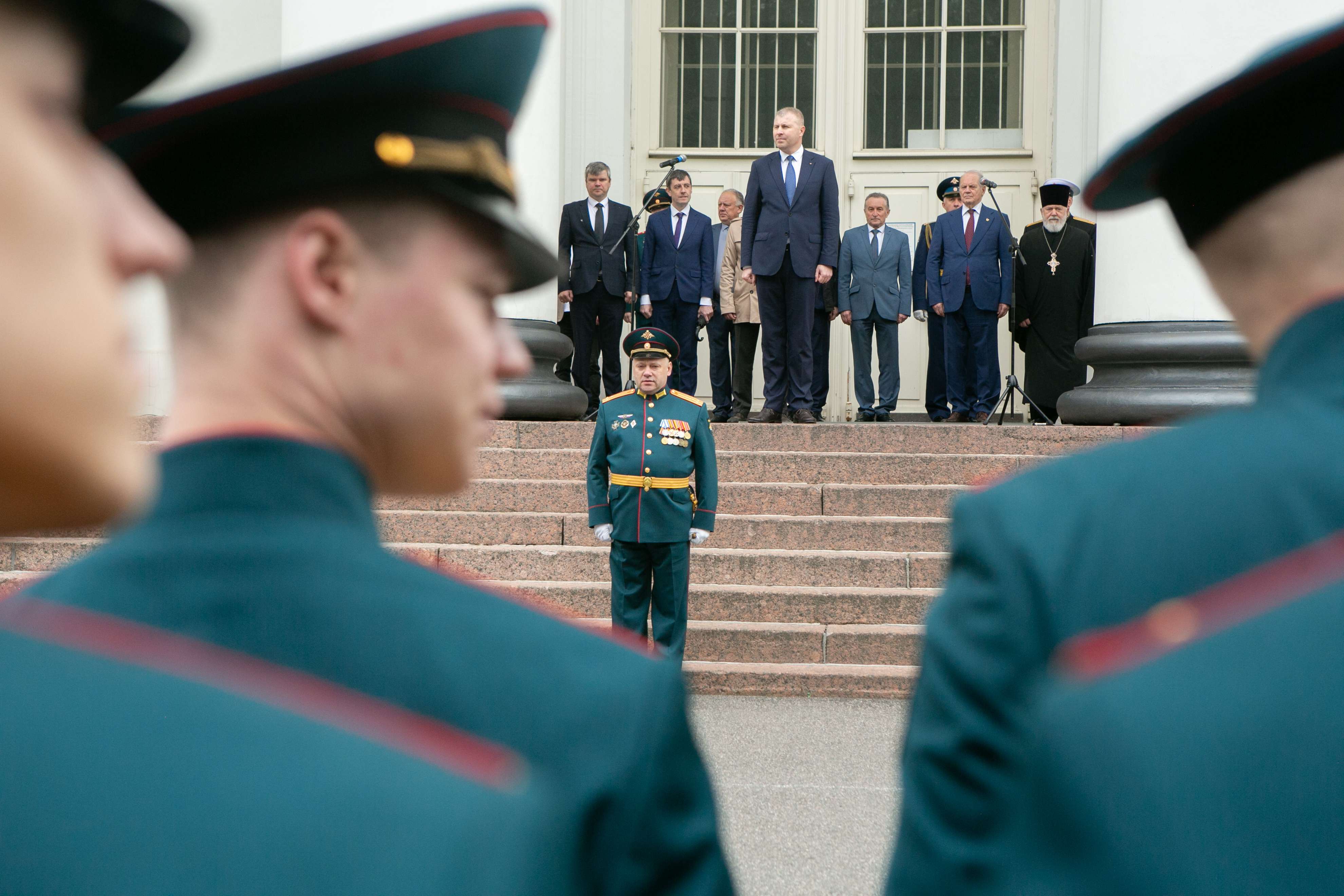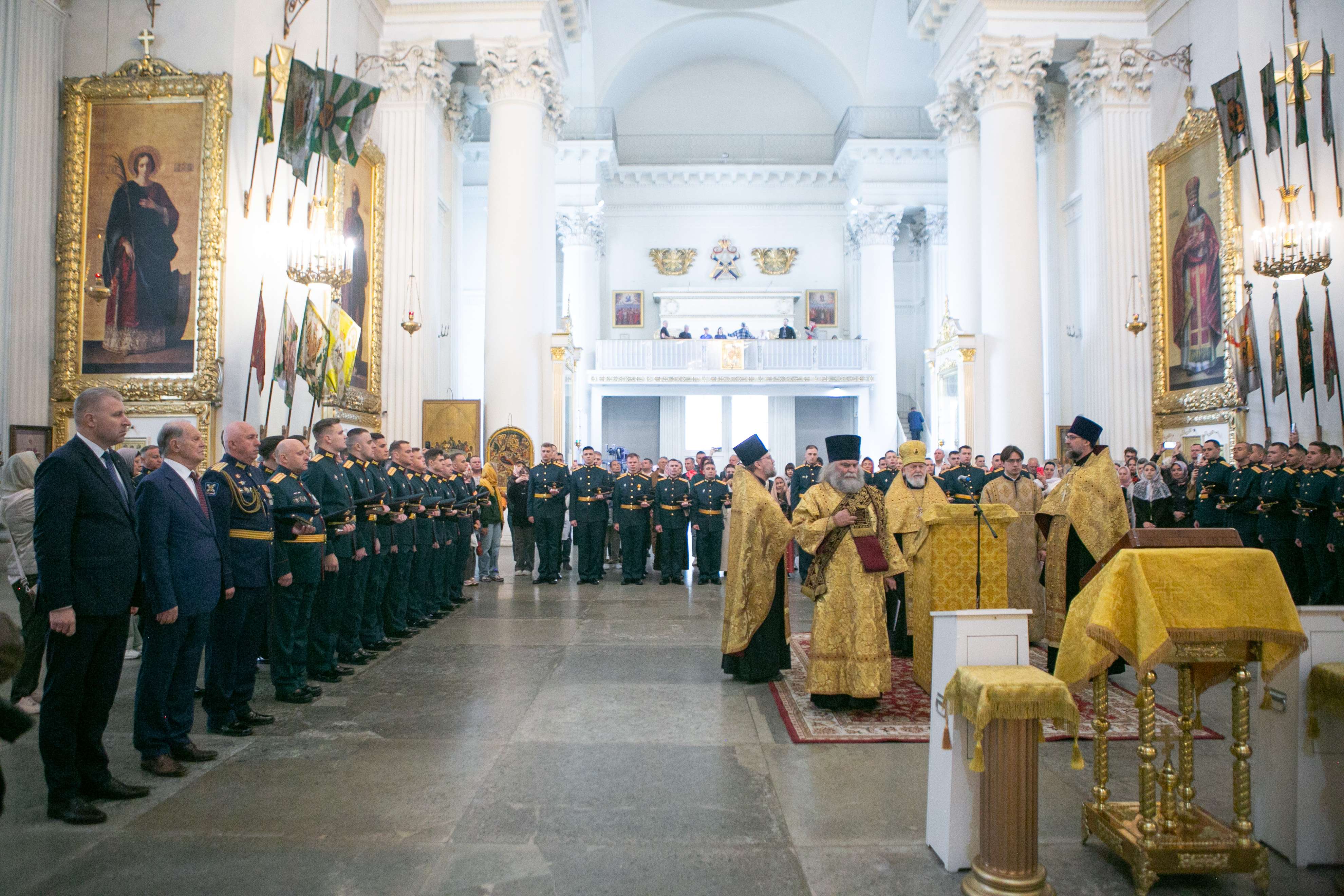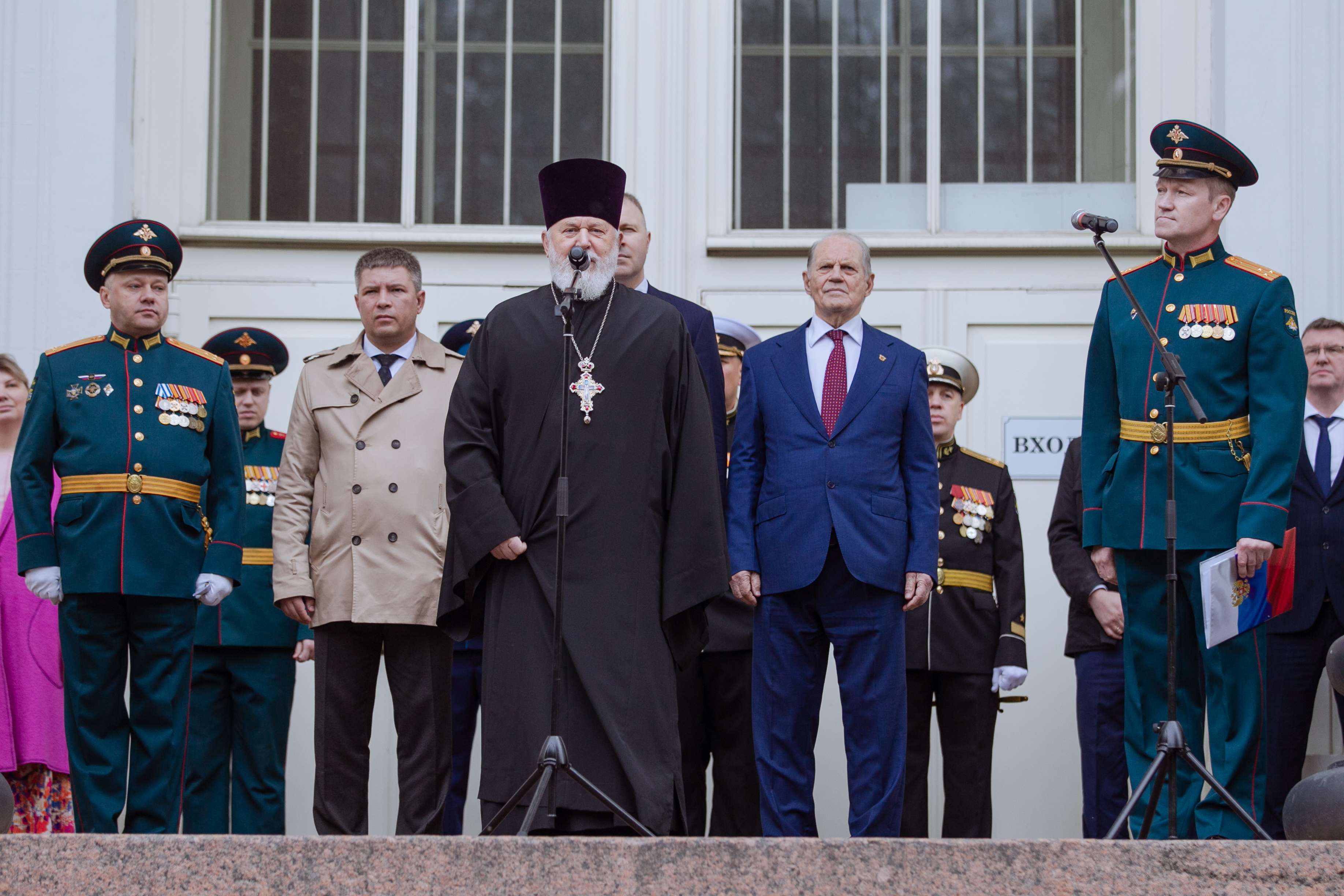 «Вы собрались здесь, где совершал построение Измайловский полк, среди личного состава которого были герои, достойно защищавшие наше будущее. Начинается и ваше служение, перед вами открывается жизнь, в которой вы должны реализовать свои знания, позаботиться о жизнях других людей. Успешного вам служения, помощи Божией, доброго здравия!» — сказал настоятель собора протоиерей Геннадий Бартов.