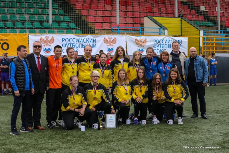 Также с 2015 года сборная участвует во Всероссийских соревнованиях по футболу среди команд образовательных организаций высшего образования, а в 2018 году наши студентки великолепно провели турнир и завоевали 3-е место на Финальном этапе в г. Майкоп. А наш капитан – Татьяна Морина – получила звание Лучшего бомбардира.