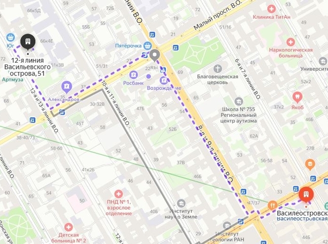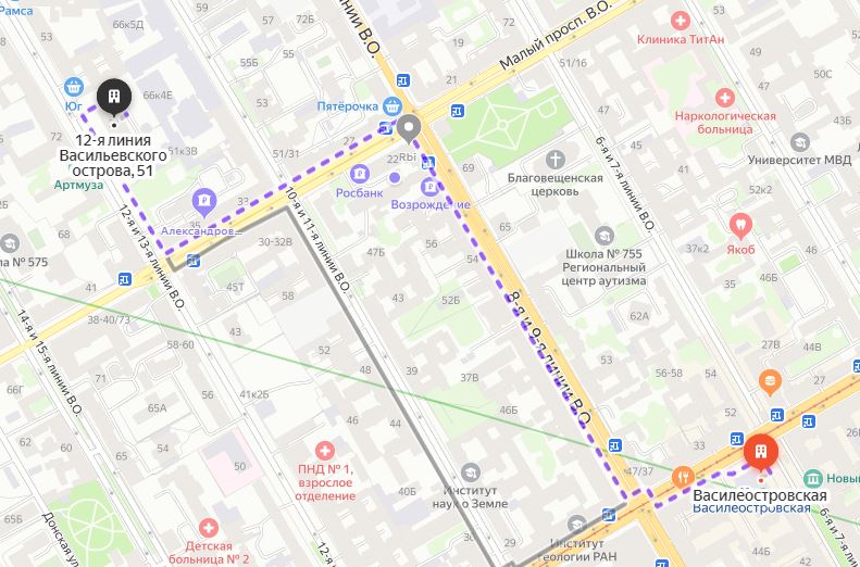 10 минут пешком от метро "Василеостровская"