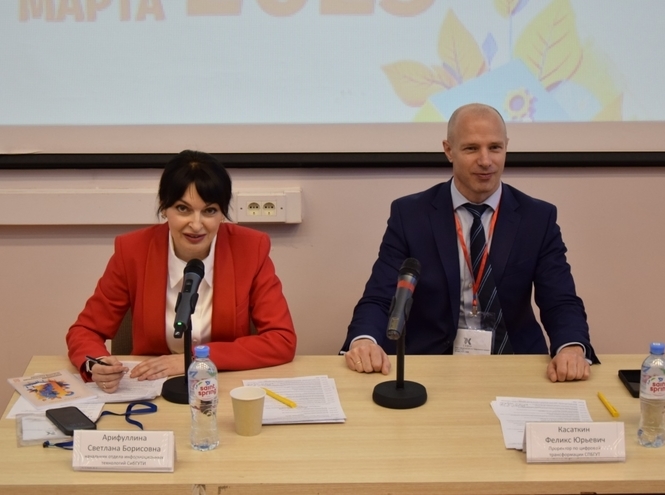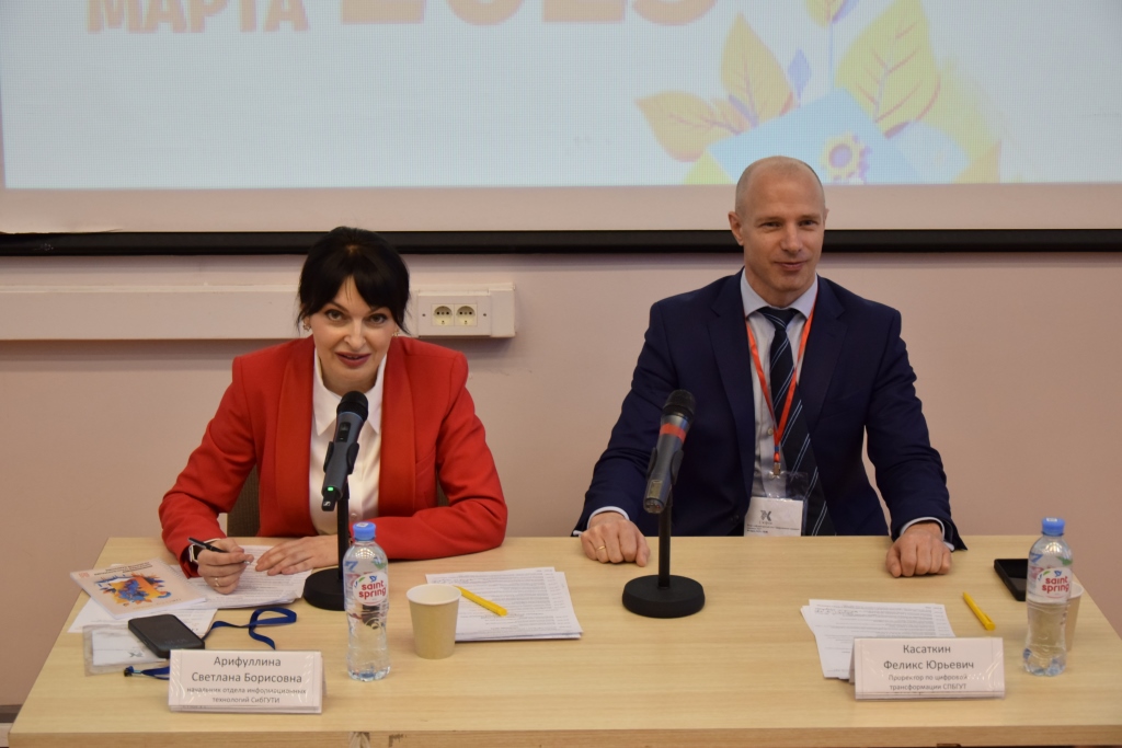 Модерировали общую секцию круглого стола проректор по цифровой трансформации СПбГУТ Феликс Касаткин и начальник управления информационных технологий Сибирского государственного университета телекоммуникаций и информатики Светлана Арифуллина.